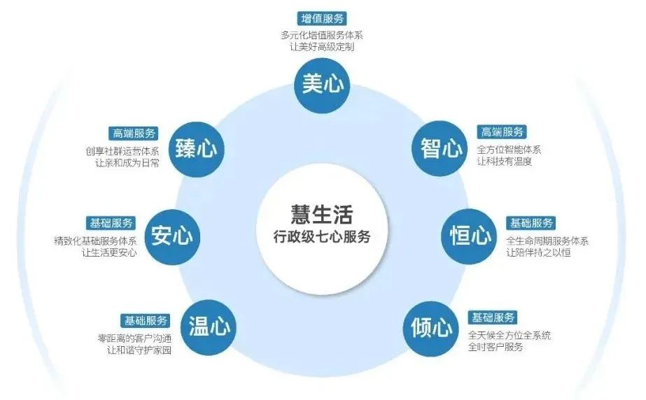 行政級七心服務(wù)體系,予社區(qū)科技的慧善服務(wù),力創(chuàng)科技賦能的美好共生體;予品質(zhì)細(xì)節(jié)的長情服務(wù),提高全生命周期的精細(xì)化體驗;予人文關(guān)懷的至誠服務(wù),創(chuàng)享友善智樂的社區(qū)幸福感;予真摯情感的關(guān)懷服務(wù),定制家人式陪伴的親和感日常。
