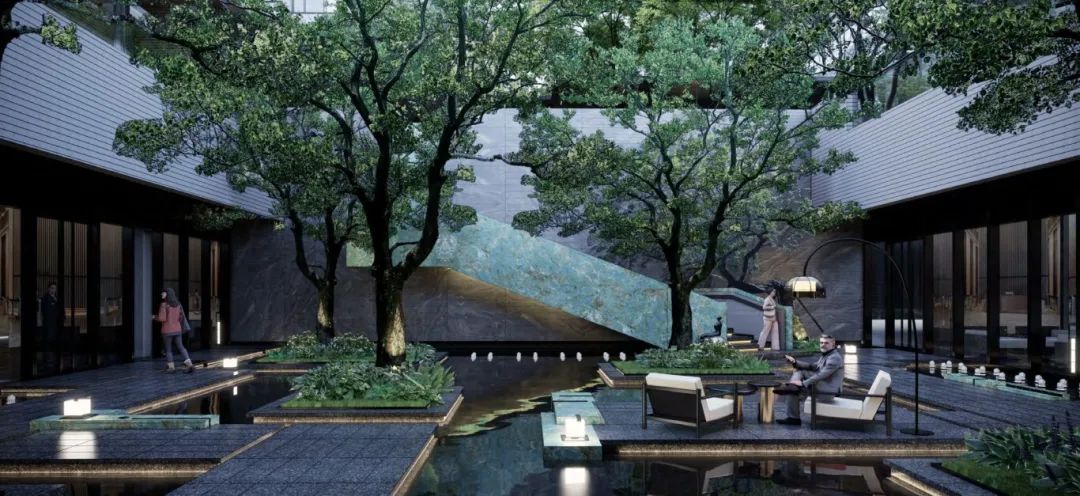 約50米奢華迎賓界面,以古都城墻肌理為靈感的對(duì)稱景墻,是歸家的第一道儀仗;酒店式落客主入口、中心圓形樹池聚氣納福;雙精裝大堂(地上地下)以奢侈品級(jí)石材鋪就身份勛章;下沉庭院銜接下沉?xí)婢呱缃慌c私密空間;立體園林營造隱謐森境;高奢門廳融入游艇藝術(shù)弧線角,打造酒店級(jí)奢華感。六重歸家禮序?qū)訉舆f進(jìn),敬呈歸家的每一步尊崇。